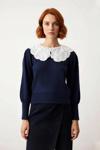 Kazağın en dikkat çekici özelliği olan gömlek yaka detayı, klasik şıklığı modern bir yorumla birleştirir; görseldeki dantelli ve işlemeli yapısıyla göz alıcı bir dokunuş sağlar. Uzun standart kolları, soğuk havalarda ekstra koruma sunarken, triko kumaşın orta kalınlığı ve tek plaka dokuma tipi sayesinde hem hafif hem de dayanıklıdır. Bu özel kumaş yapısı, kazağın şeklini uzun süre korumasına yardımcı olur ve deformasyonu engeller. Casual/günlük kullanım için ideal olan bu ürün, pratik bakımı sayesinde de kullanıcı dostudur; T41 yıkama talimatına uygun olarak makinede kolayca yıkanabilir. Günlük şıklığınızı tamamlayacak konforlu bir seçimdir.