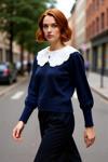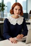 Bu modern kadın triko kazak, regular kalıbı ile gün boyu rahatlık ve şıklığı bir arada sunar. Vücuda tam oturan ancak hareket özgürlüğünü kısıtlamayan bu kesim, her kadının gardırobunda olması gereken basic bir parçadır. Kaliteli %74 akrilik ve %26 polyester materyal bileşeni sayesinde yumuşak bir dokuya sahip olup, kış aylarının soğuk günlerinde sizi sıcacık tutar. Lacivert rengin derinliği, beyaz garnili gömlek yaka detayıyla zarif bir kontrast oluşturur. Bu renk bloklu tasarım, kazağa eşsiz bir çekicilik katarken, "Cool & Comfort" personasına uygun, hem rahat hem de stil sahibi bir seçenektir.