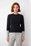 PayBuy Kadın Regular Kalıp Uzun Kollu Bisiklet Yaka Renk Bloklu Triko Kazak Şık ve Konforlu Kışlık Giyim