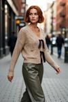 Ürün Özellikleri: Regular kalıp, akrilik - polyester materyal, saç örgü desen, v yaka, düşük kol, triko kumaş, bej renk, crop boy.