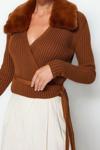Stil Modern Kadın Regular Standart Kol V Yaka Crop Suni Kürk Detaylı Triko Kazak Rahat ve stil sahibi bir görünüm sunan bu kadın kazak, gardırobunuzun favori parçası olmaya aday! Esnek yapısı ve hafif kumaşı sayesinde gün boyu hareket özgürlüğü sağlar.