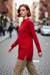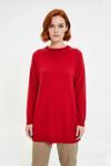 Ürün Özellikleri: Relaxed kalıp, akrilik materyal, düz desen, bisiklet yaka, düşük kol, triko kumaş, kırmızı renk.