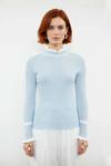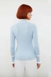 Ürün Özellikleri: Fitted kalıp, %100 akrilik materyal, renk bloklu desen, dik yaka, standart kol, triko kumaş, mavi renk.