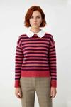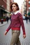 Ürün Özellikleri: Regular kalıp, 74% akrilik 26% polyester materyal, renk bloklu desen, çıkarılabilir yaka, düşük kol, triko kumaş, kırmızı renk.
