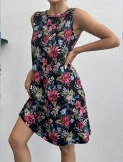 Kadın Renkli çiçek Baskılı Süprem Elbise