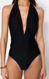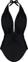 Kadın Sabit Kap Askılı Derin V Yaka Siyah Derin Dekolteli Büzgülü Regular Mayo