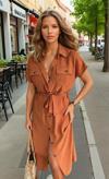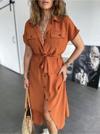 Pasaklı Giyim Kadın Safari Cepli Kemerli Airobin Kısa Kollu Düğmeli Günlük Uzun Gömlek Elbise 4045320