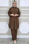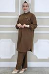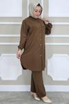 Ka Hijab Zarif Düğme Detaylı İkili Scuba Takım - Kahverengi