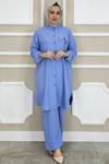 Bol Paça Gömlek&Pantolon Takım - Mavi - Image 1