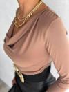 Kadın Sandy Kumaş Degaje Yaka Uzun Kollu Bluz