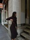 Kadın Sandy Kumaş Drabe Yaka Belinde Tül Detaylı Midi Boy Elbise