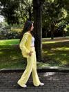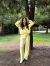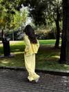- Günlük kullanım için ideal, rahat ve şık bir tercih olan kadın sarı eşofman takımı.; - Polyester materyal sayesinde uzun süreli kullanımda bile formunu korur ve dayanıklılık sunar.; - Kapüşonlu yaka tasarımı ile soğuk havalarda ekstra konfor ve stil sağlar.; - Uzun paça boyu ve regular fit paça tipi ile modern bir görünüm elde edilirken rahat hareket etme imkanı sunar.; - Young koleksiyonunun enerjik ve dinamik ruhunu yansıtan bu takım, genç ve yetişkin kadınların gardırobunda yerini alır.; - Düz deseniyle sade ve zamansız bir tarz yaratırken, her türlü aksesuarla kolayca kombinlenebilir.; - Uzun kol tasarımı ile kollarınızın tamamını sararak soğuktan korurken şık bir siluet oluşturur.; - Oversize kalıbı sayesinde rahatlık ve özgürlük hissi verirken, vücut hatlarınıza uyum sağlar.; - Türkiye'de üretilmiş olmasıyla yerel işçiliği destekler ve kalite standartlarını garanti eder.; - Örme kumaş tipi ile yumuşak dokusuyla konforlu bir giyim deneyimi sunar.;