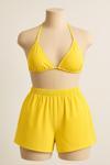 Kadın Sarı Şortlu Belden ve Boyundan Bağlamalı Bikini Takımı