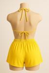 Kadın Sarı Şortlu Belden Ve Boyundan Bağlamalı Bikini Takımı
