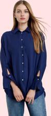 Bu göz alıcı lacivert gömlek, yaz aylarının şıklığını ve rahatlığını bir araya getiriyor. Saten dokuma kumaşıyla, hem zarif bir görünüm sunuyor hem de gün boyu konforlu bir kullanım sağlıyor. Tunik modeliyle modern ve trend bir tarz yakalarken, düşük kol tasarımı ve cepsiz yapısıyla minimal bir şıklık sergiliyor. Rahat kesim, her vücut tipine uyum sağlayan bir yapı sunuyor. Gömlek yaka detayıyla klasik bir şıklık yakalarken, düz deseniyle her türlü kombinle kolayca uyum sağlıyor. Ramadan koleksiyonundan özel tasarım bu gömlek, yaz akşamlarının vazgeçilmez parçası olacak. Yumuşak ve nefes alan kumaşıyla, gün boyu rahat ve serin kalmanıza yardımcı olur. Makinede kolayca yıkanabilir yapısıyla da pratik bir kullanım sunuyor. Bu şık gömleği, kot pantolonlarınızla veya eteklerinizle kombinleyerek, gündüz veya gece fark etmeksizin her ortamda dikkat çekici bir görünüm elde edebilirsiniz. Boyu regular olan bu gömlek, her stile uyum sağlayabilecek şekilde tasarlandı.