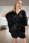 Siyah saten pijama takımı, rahatlığı ve şıklığı bir araya getiren mükemmel bir seçimdir. Hem evde dinlenmek hem de uyumak için ideal olan bu takım, regular boyuyla her vücut tipine uyar. Gömlek ve şortun uyumlu tasarımı, modern ve şık bir görünüm sunar. Bu takımı, ev terliklerinizi ve bir fincan çayınızı alarak rahat bir ev akşamı geçirmek için kullanabilirsiniz. Ayrıca, özel günlerde evinizde şık ve rahat hissetmek istediğinizde de tercih edebilirsiniz. Rahatlığı ve şıklığın bir arada sunulduğu bu takım, size unutulmaz bir deneyim sunacak.