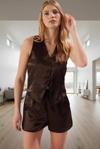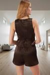 Saten kumaşa sahip bu kahve rengi pijama takımıyla kendinizi evinizin rahatlığında şımartın. Yumuşak dokusuyla cildinize dokunan bu takım, hem şık hem de rahat bir uyku deneyimi sunar. Kalın askılı, V yaka yelek ve boru paça şorttan oluşan takım, mükemmel uyum sağlar. %100 polyester malzemesiyle dayanıklı ve kolay bakımıyla pratiktir. Rahat kesim ve regular boyuyla gün boyu evde rahatlıkla kullanabilirsiniz. Kahverengi rengi sayesinde her dekorasyon stiline uyum sağlar. Bu takımla kendinizi özel hissedeceksiniz. Her mevsim kullanılabilen bu pratik pijama takımı, keyifli ve huzurlu anlar geçirmenizi sağlayacak. Makinede 60 derecede yıkayabilirsiniz.