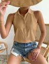 Kadın Sıfır Kol Dokuma Viskon Kumaş Gömlek