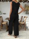 Kadın Sıfır Kollu Bisiklet Yaka Arkadan Bağlamalı Aer8bin Bluz Ve Pantolon Ikili Takım