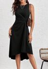 Kadın Sıfır Kollu Bisiklet Yaka Büzgülü Asimetrik Kesim Detaylı Janjan Krep Elbise