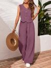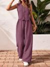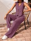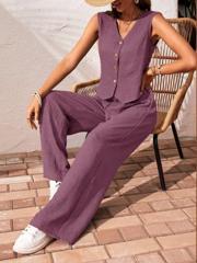 Kadın Sıfır Kollu Düğmeli Yelek Ve Pantolon Bürümcük Ikili Takım