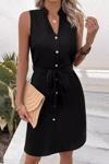 Kadın Sıfır Kollu Hakim Yaka önden Düğmeli Belden Kuşaklı Ithal Keten Elbise