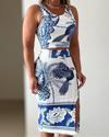 Kadın Sıfır Kollu Yuvarlak Yaka çiçekli Desenli Süprem Crop Ve Yırtmaçlı Etek Ikili Takım