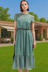 Ersefa Kadın Şifon A Kesim Kemerli Midi Elbise Astarlı Dik Yaka Şık Görünüm Kaliteli İşçilik Konforlu Kesim