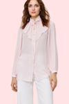 Zarif ve feminen görünümün sırrı, fırfırlı detayıyla göz alıcı Kadın Şifon Gömlek ile buluşuyor! Hafif ve nefes alabilen şifon dokusuyla yaz aylarının vazgeçilmezi olacak bu gömlek, özel günlerinizde ve gece davetlerinde şıklığınızı tamamlayacak. Hakim yaka tasarımıyla feminen bir hava katarken, uzun kolları ve rahat kalıbıyla gün boyu konfor sunuyor. Pembe rengi ile her ten rengine uyum sağlayacak olan gömlek, gardırobunuzun en gözde parçalarından biri olmaya aday. Üstün kaliteli polyester malzemesiyle uzun ömürlü kullanım imkanı sunuyor. Makinede kolayca yıkanabilir özelliğiyle pratiklik sağlıyor. Bu şık gömlek ile stilinizi en iyi şekilde yansıtacaksınız!