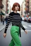Ürün Özellikleri: Fitted kalıp, viskoz polyester poliamid materyal, çizgili desen, bisiklet yaka, standart kol, triko kumaş, ekru renk, baskısız tasarım.
