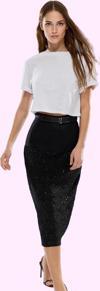 Bu çok yönlü etek, gece davetlerinden özel günlere kadar birçok farklı ortamda kullanabilirsiniz. Şık bir bluz veya gömlek ile kombinleyerek mükemmel bir görünüm oluşturabilirsiniz. Topuklu ayakkabı tercih ederek şıklığınızı daha da vurgulayabilirsiniz. Eteğin düz deseni ve finike dokuma tipi, modern ve zarif bir görünüm sunuyor. Payet detaylar ise eteğe ekstra bir ışıltı katıyor.