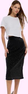 Kendinizi özel hissetmenizi sağlayacak, göz alıcı bir etek arıyorsanız doğru yerdesiniz! Bu muhteşem midi etek, siyah rengi ve göz kamaştırıcı payet detaylarıyla her ortamda dikkatleri üzerinize çekecek. Dokuma kumaştan üretilen etek, hem şık hem de rahat bir kullanım sunuyor. Normal bel yapısı ve rahat kesimiyle gün boyu konforlu hissedeceksiniz. Midi boy uzunluğu ise her vücut tipine uyum sağlıyor.
