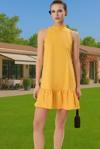 Yazın enerjisini yansıtan bu şık mini elbise, gardırobunuzun yeni favorisi olacak! Nefes alan ve rahat bir his sunan poplin dokuma kumaştan üretilen elbise, gün boyu konfor ve özgürlük sağlar. Modern ve feminen tasarımıyla, her ortamda etkileyici bir görünüm yakalamanızı sağlar. Dik yakası ve kolsuz tasarımıyla yaz sıcağında serin kalırken, mini boyu ve rahat shift kalıbıyla şıklığınızdan ödün vermezsiniz. Elbisenin alt kısmındaki fırfırlı detay, hareketlilik katarken, tarzınıza da ince bir dokunuş ekler.