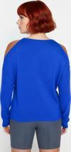 Ersefa Kadın Şık Relaxed Kalıp Dik Yaka Uzun Kollu Omzu Açık Detaylı Tarz Akrilik Triko Kazak Kaliteli
