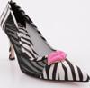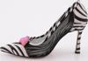 DGN Kadın Sivri Burun Parmak Dekolteli Dudak Toka Detaylı Yan Fileli Topuklu Ayakkabı Zebra Rugan 8814535