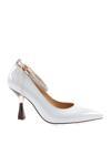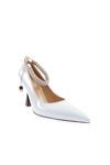 DGN Kadın Sivri Burun Parmak Dekolteli Sılver Taşlı Bilekten Bağlı Kadeh Topuklu Ayakkabı Bebe Mavi Rugan 212521085