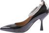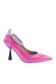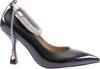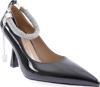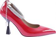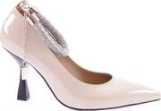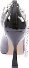 DGN Kadın Sivri Burun Parmak Dekolteli Sılver Taşlı Bilekten Bağlı Kadeh Topuklu Ayakkabı Siyah Rugan 212521085