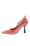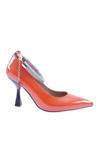DGN Kadın Sivri Burun Parmak Dekolteli Sılver Taşlı Bilekten Bağlı Kadeh Topuklu Ayakkabı Turuncu Rugan 212521085