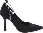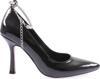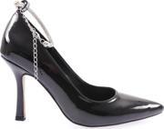 DGN Kadın Sivri Burun Parmak Dekolteli Taşlı Halhal Detaylı Topuklu Ayakkabı Siyah Rugan 6871535