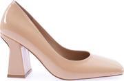 DGN Kadın Sivri Burun Parmak Dekolteli Topuklu Ayakkabı Nude Rugan 215112859