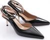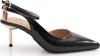 DGN Kadın Sivri Burun Parmak Dekolteli Yan Kilit Aksesuarlı Arkası Açık İnce Topuk Ayakkabı Siyah Rugan 288221085