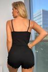 Kadın Siyah Alt Ve Üst Dantel Detaylı Şortlu Gecelik Takımı