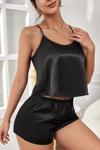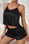 Kadın Siyah Asimetrik Sırt Dekolte Detaylı Şık Şortlu Gecelik Takım