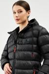 Kadın Siyah Su Ve Rüzgar Geçirmez Kapüşonlu Kışlık Şişme Mont.