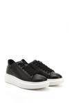 Kadın Siyah Bağcıklı Dolgu Taban Hakiki Deri Sneaker