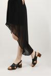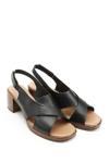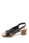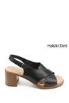 * Gön Hakiki Deri Cırt Bantlı Kalın Topuklu Kadın Sandalet