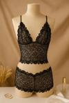 • Zarafetin ve cazibenin birleştiği siyah dantel bralet şort takımı, şıklığıyla göz kamaştırırken rahatlığıyla gün boyu konfor sağlar.