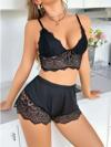 Kadın Siyah Dantel Detaylı şortlu gecelik pijama takımı, cesur ve şık bir görünüm yaratır. Yumuşak kumaşı sayesinde rahat kullanım imkanı sunar.
