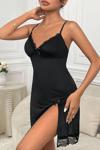 Beruflic Kadın Siyah Dantelli Fiyonklu Ve Yırtmaçlı Şık Gecelik