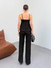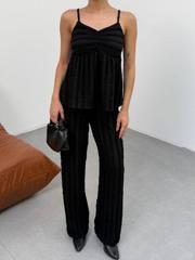 Kadın Siyah Dokulu Askılı Üst Ve Bol Paça Pantolon 2’li Takım
